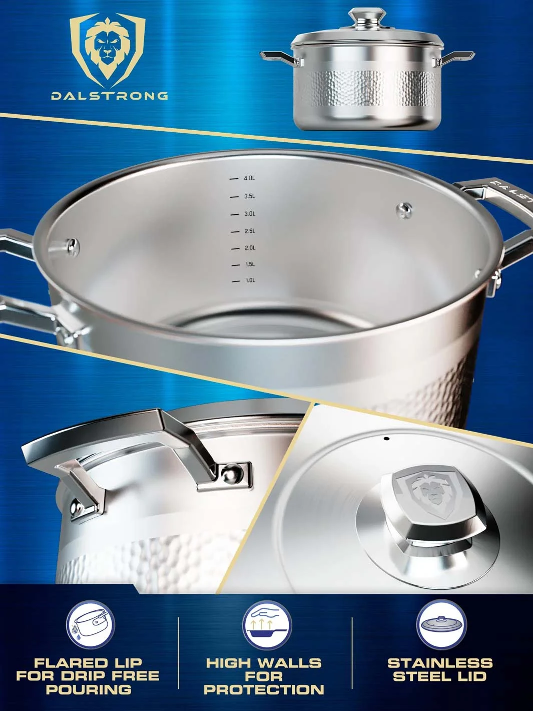 - 5 Quart Stock Pot – Hammered Finish – Silver – The Avalon Series