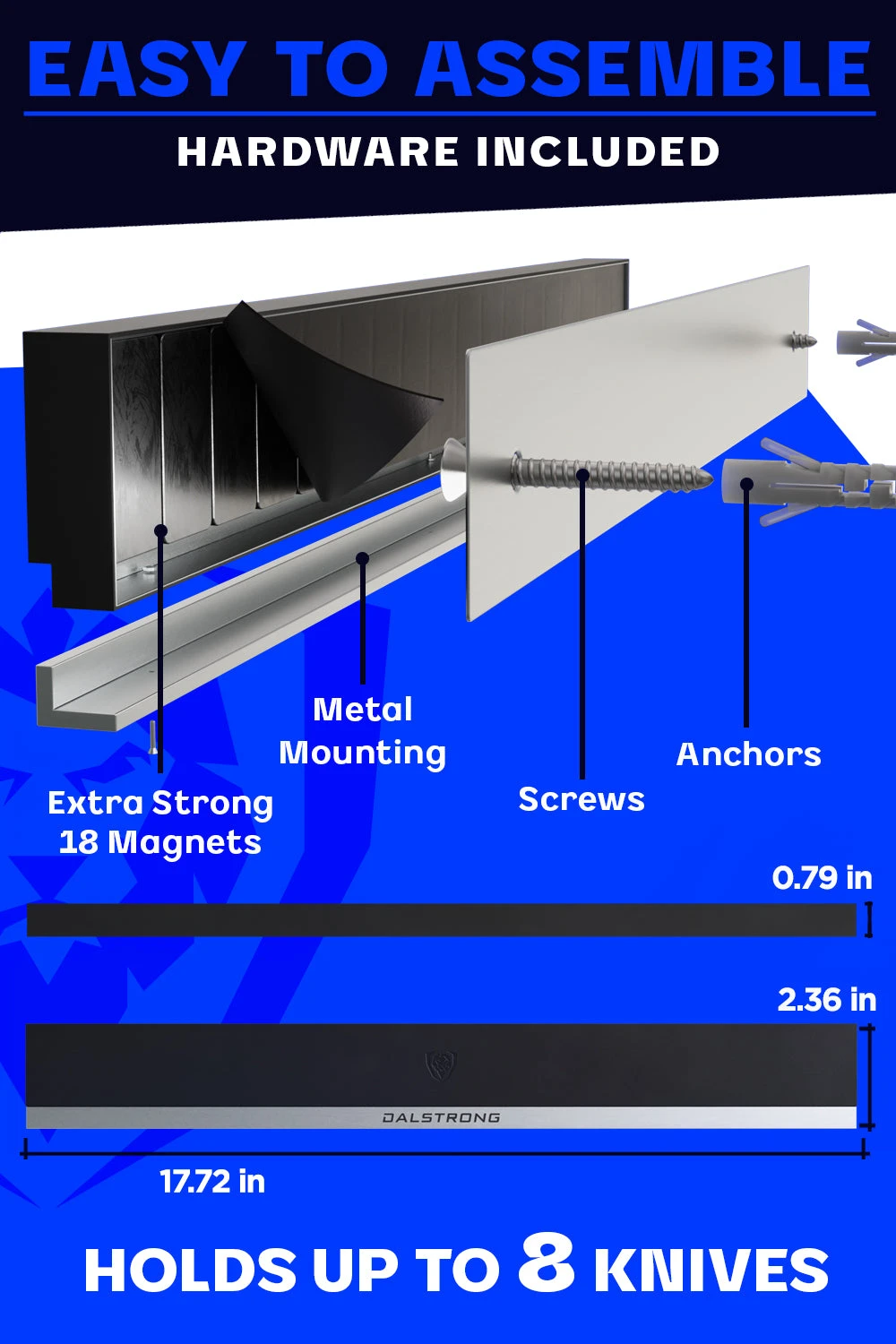At nearly 18 inches long (45cm) this knife bar can hold all your cutting-edge essentials without taking up space, risking the blades, or cluttering the countertop. It’s a subtle display mount as well as a useful storage unit that will last a lifetime. Secure it to the wall easily by mounting the back panel with appropriate screws. The front panel will be held in place with the magnetic force. This powerful kitchen magnet is sure to attract a lot of attention.