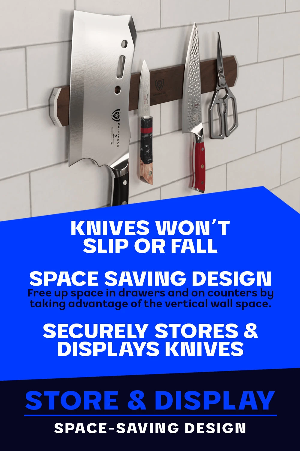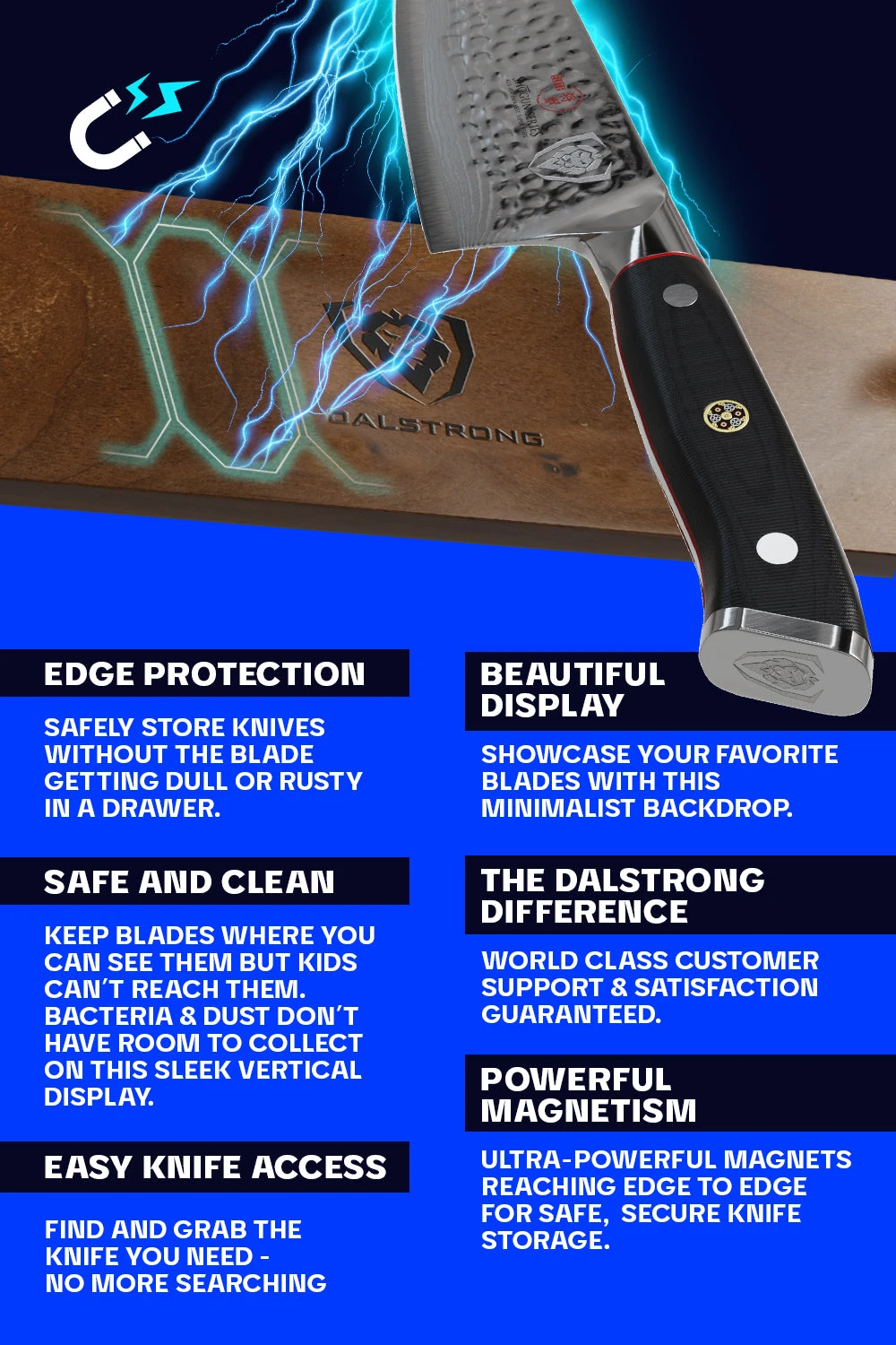 The perfect balance between a handsome design and supreme functionality, the Dalstrong Wooden magnet rack proudly organizes and displays your tools. The design also minimizes space for bacteria to accumulate, keeping your knives cleaner and safer.