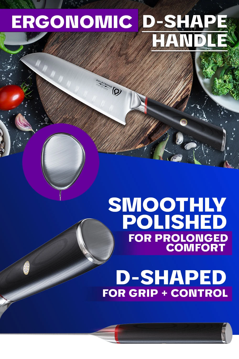 - Traditional Japanese D-shaped handle designed to tuck into the palm of your hand for superior hand control, comfort and agility.