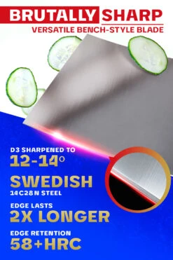 - The edge is painstakingly hand sharpened to 12-14° per side