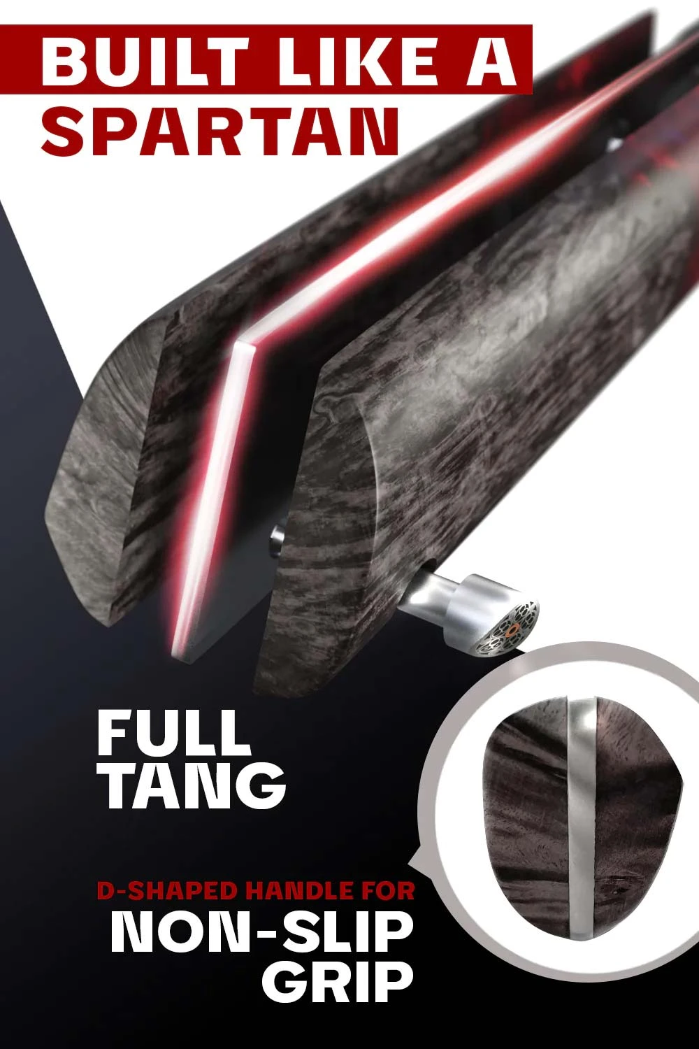 The Spartan Ghost series is the epitome of performance luxury. We spent two years perfecting the design, ensuring that every line and curve was crafted to perfection. The result is a knife that exudes power and elegance. The D-shaped handle fits perfectly in your hand, providing a non-slip grip that allows you to wield the blade with precision and confidence. The blood red resin and stabilized dead wood handle are not only striking, but each combination is unique, making your knife truly one of a kind. The brass and copper mosaic detail adds a touch of sophistication and hints at the deadly capabilities of this knife.