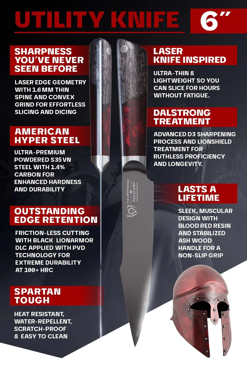 The Dalstrong Spartan Ghost Series is the ultimate expression of uncompromising knife performance. Meticulously crafted with the finest powdered S35VN steel and coated with our signature black DLC LionArmor, these knives are engineered to deliver unmatched durability and cutting power. Our D3 sharpening process ensures the blade edge is honed to the utmost sharpness, while our advanced LionShield treatment guarantees your knife will remain tough and resilient through even the most demanding tasks. Like the legendary warriors of Sparta, the Spartan Ghost Series is built to conquer any challenge and exceed all expectations. Experience the ultimate in cutting performance and power with the Dalstrong Spartan Ghost Series.